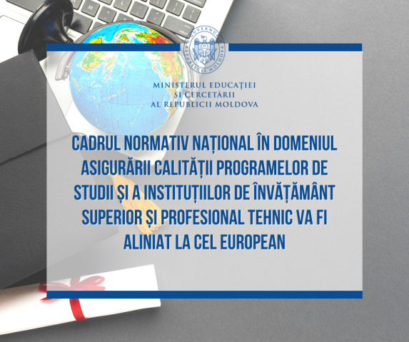 Programele naționale de studii vor fi evaluate conform Standardelor și Liniilor Directorii Europene în domeniul asigurării calității. Metodologia de evaluare și acreditare a programelor de studii ale instituțiilor de învățământ profesional tehnic, superior și de formare profesională continuă a fost modificată astăzi de Guvern. Proiectul prevede alinierea la cadrul european de asigurare a calității programelor de studii ale instituțiilor de învățământ, facilitarea recunoașterii comune a diplomelor eliberate în Republica Moldova etc.